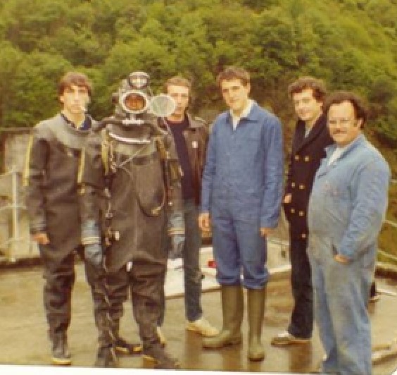 C'est une ambiance particulière qui règne ce matin là, au moulin, un nouveau stage, un petit frisson me parcourt le dos je me revois ici il y a deux ans, à leur place, c'est rien deux ans et pourtant le chemin et les expériences vécues me semblent immensurable. Je découvre ces nouvelles têtes une a une, je ne sais pas encore que certains seront mes compagnons de route pendant plus de 25 ans, je ne sais pas encore que d'autres auront des destins tragiques et perdront la vie ici et dans ce métier qui nous passionne tous, je ne sais pas encore que quelques uns liront ces lignes 40 ans plus tard et verront un instant passer les images de leur jeunesse. Pendant ces trois a quatre mois deux stages vont s’enchaîner, Petit Pierre à la baguette, "Stock" et moi à l'assistance, on répète tout ce que nous avons vécu auparavant, par deux fois je retrouverais Argentat et le barrage de HAUTEFAGE pour les plongées de fin de stage et j'en garde de sacrés souvenirs. A la fin de ces stages tous les nouveaux sont affectés dans la société sauf un ou deux qui venaient d'entreprise ou d'organisme extérieur, comme notre petit ingénieur de COYNE ET BELLIER, qui lui aussi perdra la vie un peu plus tard. Dans ce lot de jeunes stagiaires c'est marrant il y a des fils d'anciens scaphandriers, Sabatier, Cobos, Cabrejas, oui les pères de la SOGETRAM ont transmis la passion à leurs progénitures, parfois ce sont mêmes les frères de stagiaires précédant, qui viennent grossir les rangs, ceux qui participent bien sur à cet esprit de corps et de famille dans ce milieu.